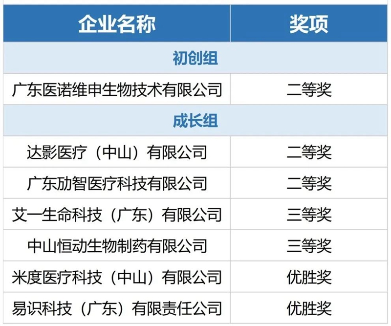 中國(guó)創(chuàng)新創(chuàng)業(yè)大賽(中山賽區(qū))獲獎(jiǎng)企業(yè) (健康基地園區(qū))