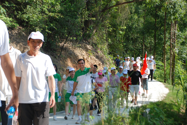 本網(wǎng)訊 為紀(jì)念我國第三個“全民健身日”,促進(jìn)全民健身,8月8日清早,健康基地總公司及園區(qū)企業(yè)九州通醫(yī)藥公司、中智藥業(yè)公司、騰駿藥業(yè)公司和美味鮮食品公司等共100余人組成寵大的代表方隊(duì),參加主題為“全民健身迎大運(yùn)、每天鍛煉1小時”的2011年中山市“全民健身日”十萬市民綠道健身跑開發(fā)區(qū)分會場活動。在開發(fā)區(qū)常委書記、管委會主任侯奕斌的一聲令下,各單位晨跑隊(duì)員有序地從預(yù)定地點(diǎn)起跑。在近1小時的活動中,隊(duì)員們個個精神抖擻,圖的是酣暢淋漓。此屆健身跑活動有別于往屆,活動地點(diǎn)選擇在開發(fā)區(qū)華陀山公園,活動全程行程約2000米,公園里叢林繁茂,地勢起伏有致,環(huán)境怡人,非常適合休閑健身。